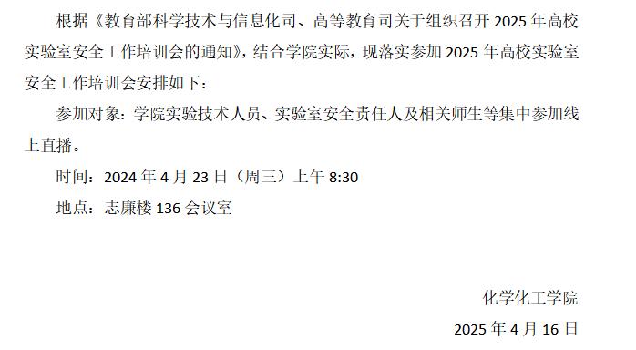 关于组织参加教育部2025年高校实验室安全工作培训会的通知