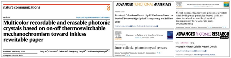 为第一单位、杨东朋博士为第一通讯作者在国际著名期刊Nature Communication、Advanced Functional Materials、Advanced in Colloid and Interface Science、Journal of Colloid and Interface Science发表,并受邀为Advanced Photonics Research撰写综述性论文。