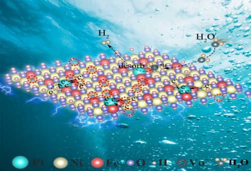 该研究的核心成果在于提出了一种新型催化剂设计思路:将铂原子通过铂-镍电子桥锚定在含氧缺陷的镍铁层状双氢氧化物上,从而有效降低铂的价态,改善了其对氢的吸附能力。这一机制与传统的铂-氧键结合不同。研究表明,镍铁层状双氢氧化物中的氧空位不仅促进了铂原子电子转移,而且提高了镍的亲水性,进而降低了水解反应的能垒。这使得该催化剂在电催化析氢反应中表现出了极低的过电位,且其质量活性分别是商业Pt/C催化剂的51.5倍和23.7倍。该催化剂不仅提升了析氢反应的效率,还展示了通过合理设计金属催化剂的配位环境和电子结构来增强催化性能的巨大潜力。
