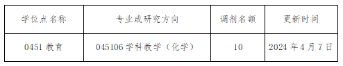 首个理学硕士学位优秀毕业生;2018年,开始“化学”国际留学硕士研究生的招生与培养;2020年,开始“教育”专业型硕士学位研究生的招生与培养,设“学科教学(化学)”专业方向;2021年,开始“化学”博士研究生联合培养;形成了“本科+硕士+留学生+联合培养博士研究生”四位一体的人才培养体系。