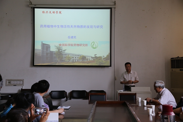 随后岳建民研究员为大家做了题为《药用植物中生物活性天然物质的发现与研究》的报告。他从楝科植物中活性成分的研究进展、虎皮楠生物碱成分研究和大戟科植物中活性成分研究的新进展等方面向与会人员介绍了他课题组的一些研究成果及进展。