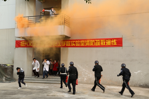 在南山校区浙江省精细化学品传统工艺替代技术研究重点实验室举行了实验室应急疏散演练。越城区消防大队、绍兴文理银河国际