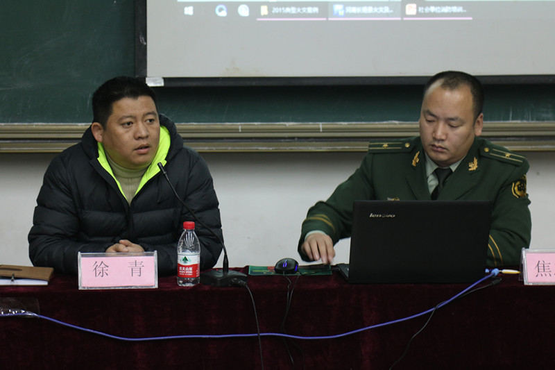 讲座伊始,徐青老师从生活小事出发阐述了消防安全的重要性,引出讲座的主题。接着,焦志高队长向同学们详细地讲述了生活中火灾的隐患,提醒同学们防微杜渐,不要因为隐患很小就忽视它的存在;同时,焦队长以幽默风趣的语言介绍了一些火灾情况之下的逃生方法以及灭火器等消防设备的使用方法。其间,他还通过播放一些视频资料让同学们更好地建立对待火灾和消防安全的正确观念,明确火灾发生后的正确应对方法。焦队长详细生动地描述了发生火灾后自救和他救方法,让同学们受益匪浅。