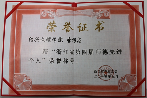 从省教育工会传来喜讯,银河国际 教师季根忠教授荣获“浙江省第四届师德先进个人”荣誉称号。