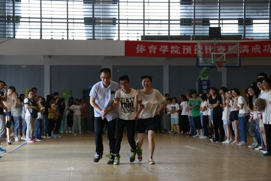 领导班子成员带头参加,师生们共同参与了跳长绳、羽毛球投篮、定点投篮、三人两足、趣味接力等各个项目。