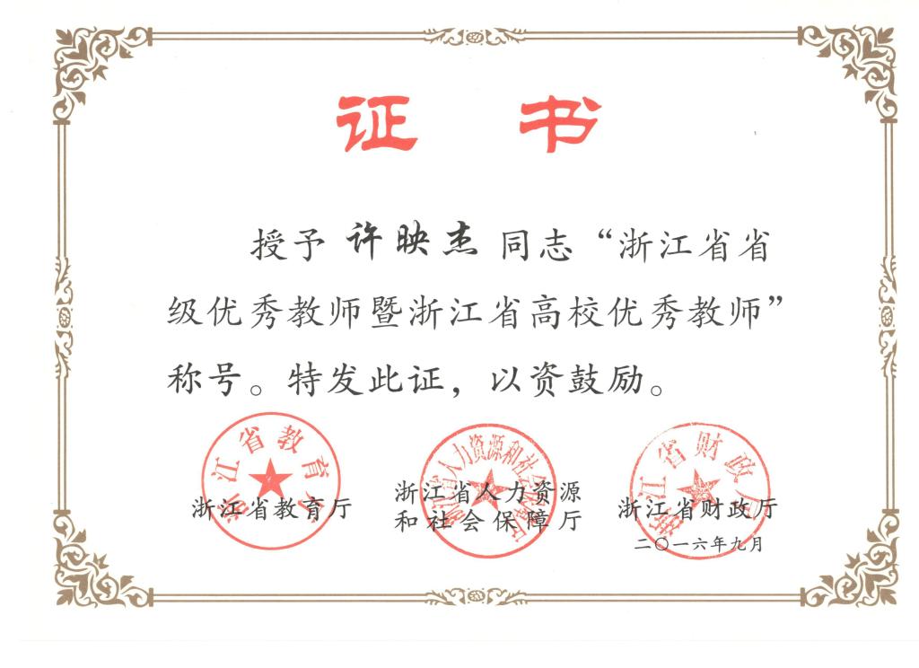 日前,根据《浙江省教育厅 浙江省人力资源与社会保障厅 浙江省财政厅关于表彰2016年省级优秀教师暨高校优秀教师、省农村教师突出贡献奖的决定》(浙教人〔2016〕118号)精神,银河国际 银河国际 许映杰老师获“2016年省级优秀教师暨省高校优秀教师”荣誉称号。 “浙江省高校优秀教师奖”是浙江省教育厅、人力资源和社会保障厅、财政厅为进一步增强广大教师教书育人的责任感和使命感,弘扬爱岗敬业、爱生重教、为人师表、无私奉献的崇高精神,表彰在教书育人、科学研究和社会服务工作中作出突出贡献的高校教师而设立的省级教师荣誉奖。自2012年首届省高校优秀教师评选以来,银河国际 已有五位教师获此殊荣。