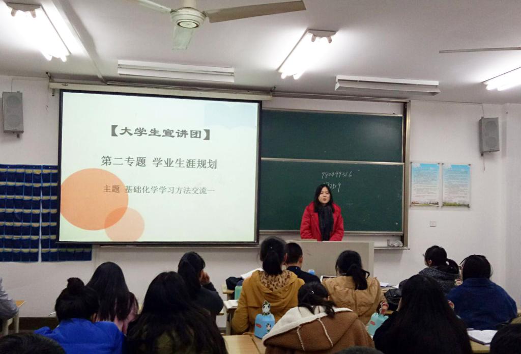 、书院概况,结合自己大学生活、工作的经历,介绍学生会、社团特色活动和党团组织架构,帮助新生更快、更好地熟悉大学;通过分享班级建设心得体会,引导同学共同创建一个团结温暖的班集体。在“学业生涯规划”专题,通过分享基础化学学习方法经验体会,在激烈的讨论和思想碰撞中探索更高效的学习方法;通过考证考级经验分享,让新同学在深入了解自身专业的同时,更加注重全面发展。在“创新创业”、“学科竞赛”专题,通过分享科研、创业、各类学科、技能竞赛经验,激发新同学兴趣,为今后的职业生涯规划打下基础。