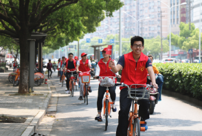 入党积极分子沿着风则江开展剿灭(劣)Ⅴ水环保骑行活动。大家手持污水、节能减排等有环保口号的小红旗,向市民发起倡议,呼吁大家共治污水,支持节能环保,绿色出行。