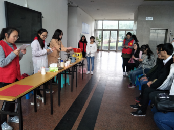 志廉楼大厅设点,为广大师生讲解了污水处理相关流程,并在现场通过“蒸馏法”演示污水净化的实验,呼吁广大师生积极参与治水工作。