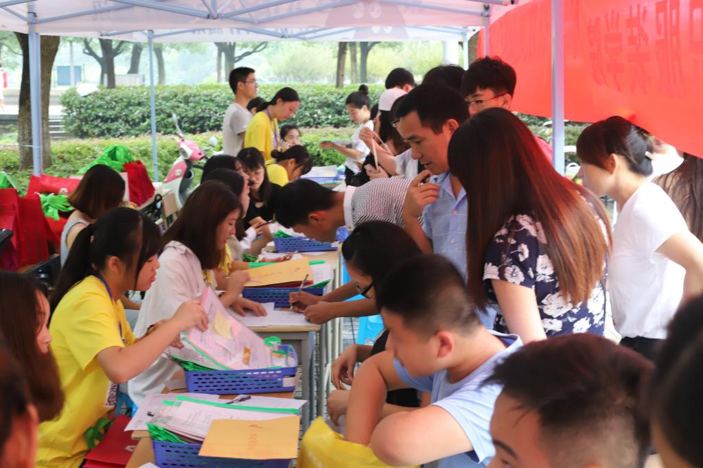 及早布置迎新方案,提前做好各项迎新准备及预案。报到当天,树人书院的“小黄鸭”和研究生志愿者早早守候在各个站点,等待着2017级新同学的到来。志愿者们活跃在校园各个角落,从校门口到报到点再到寝室,为新同学们提供一站式服务。拎着厚重的行李,还不断为新生和家长介绍着校园的风景及绍兴风土人情,让家长和新同学感受到来自银河国际