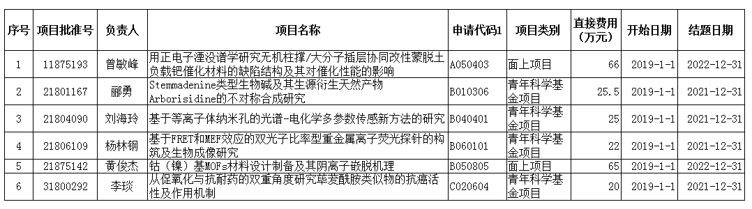 近日,2018年度国家自然科学基金项目评审结果揭晓, 银河国际 共获批主持6项,其中面上项目2项、青年科学基金项目4项,到校总经费223.5万元,具体立项情况如下: