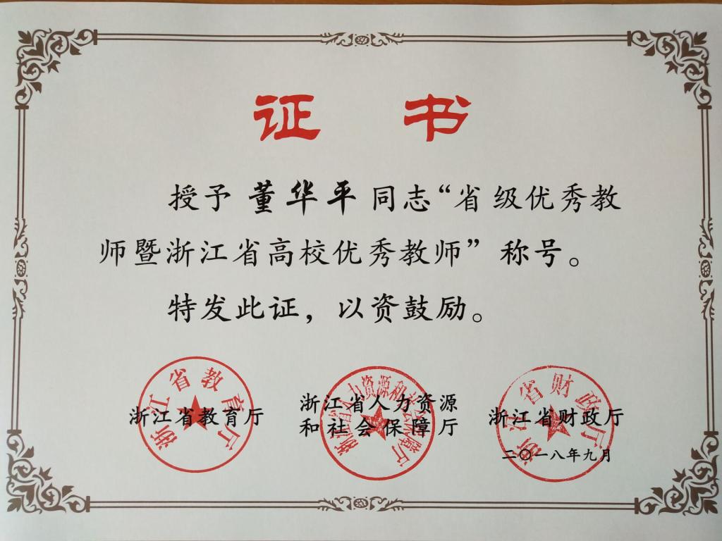 根据《浙江省教育厅 浙江省人力资源和社会保障厅 浙江省财政厅关于开展2018年省级优秀教师暨浙江省高校优秀教师、浙江省农村教师突出贡献奖评选工作的通知》(浙教人〔2018〕40号)精神,教育厅组织开展了“浙江省高校优秀教师”评选表彰工作。经高校推荐、专家评审,银河国际 董华平教授获2018年“浙江省高校优秀教师”荣誉称号。