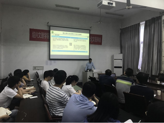 讲座中,陈教授提到,由于人口增长、工业化和城镇化的推进,工业污水和生活废水大量排放造成环境和资源的压力逐渐增大,在污水处理技术中,高级氧化法具备能耗低、常温常压进行等优点,具有很好的应用前景。陈教授首先介绍了近几年课题组通过研究g-C3N4催化剂以及对其改性,从而提高光催化效率,主要应用于光催化降解罗丹明B,并取得了良好的进展。其次介绍了“吸附富集-催化氧化”法来去除有机微污染物,采用高吸附量、催化活性的新型碳纳米材料循环高效去除微污染物。陈教授最后介绍了浙江师范大学,并对在座的研究生们提出诚挚的邀请,并希望银河国际 有意愿研究生报考浙江师范大学博士。