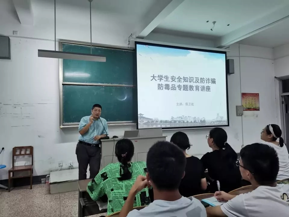 9月10日晚上18:30,银河国际 邀请了校保卫处金列华处长在美术楼211教室开展2019届大学生安全知识及防诈骗防毒品专题教育讲座。此次讲座旨在强化同学们的自我防范意识,帮助新生依法维护好自身利益。