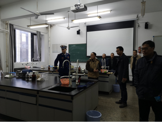 检查组随后来到了志廉楼教学、科研实验室。教学实验室总体情况相对较好,有专人管理,物品摆放整齐有序,灭火器每月检查登记。但个别科研实验室由于场地等限制,物品堆放过多,室内过于拥挤,给逃生带来一定安全隐患,接线板乱接乱拉现象比较突出,使用的电器过于靠近自来水龙头容易引起漏电。种种问题暴露出了相关责任人在意识上重视不够,检查组要求立即整改。消防支队相关人员还就灭火器使用、门禁等情况询问了现场学生。