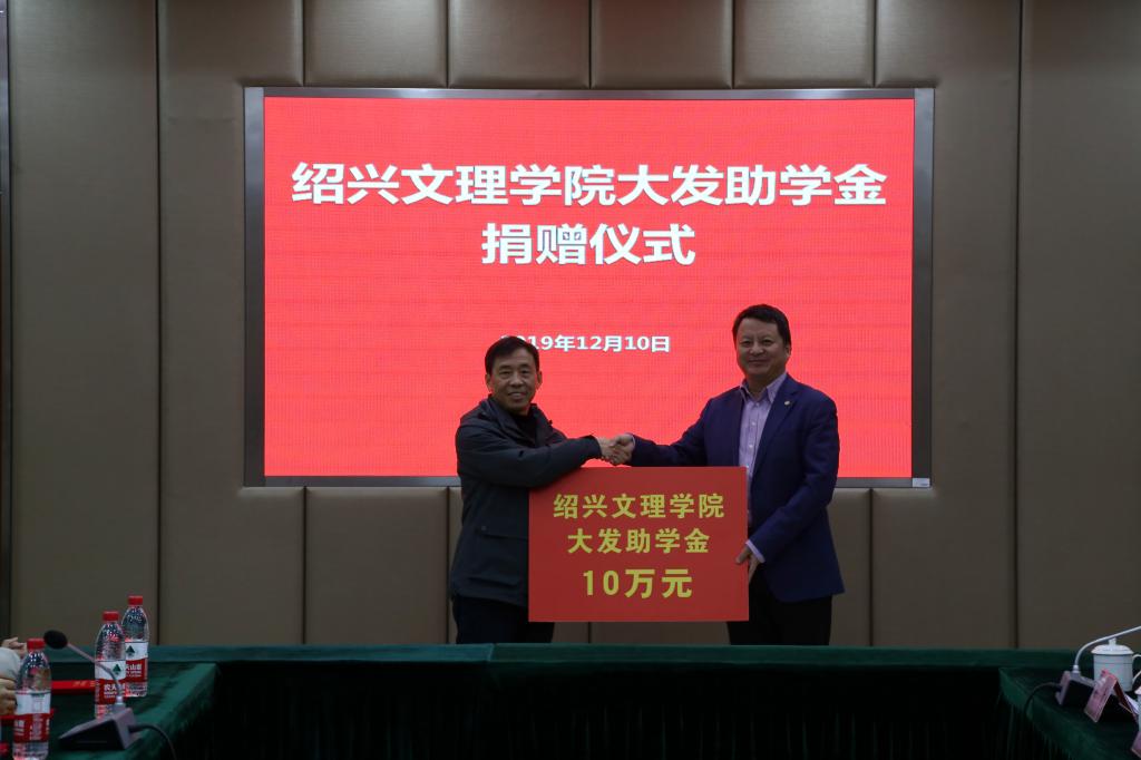 发展的浙江宁波大发化纤有限公司表示感谢,也向获得2019年“大发助学金”的10位同学表示热烈的祝贺。希望获奖学生甘于奉献,学会感恩,深切领会公司的捐赠意图,热爱生活,自强不息,奋发进取,用自己的实际行动和优异成绩去回报社会对我们的关爱。