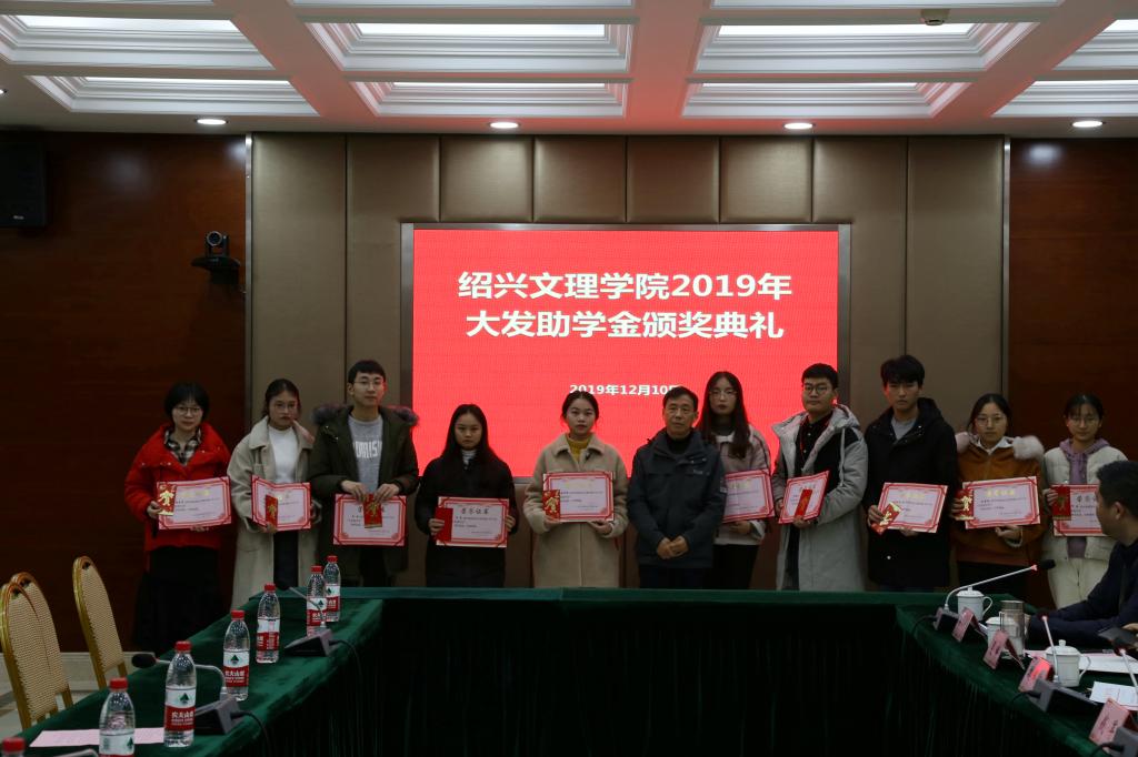 12月10日上午,2019年“大发助学金”颁奖典礼在铁城科教馆一楼会议室举行。校党委副书记沈赤,宁波大发化纤有限公司副总经理钱军先生,学工部、对外联络处、银河国际