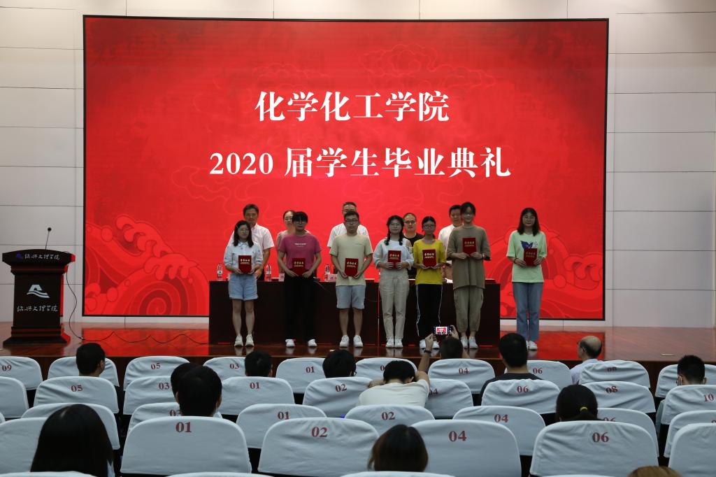 随后,各班班长作为校友联络员上台领取了聘书;毕业生代表领取了毕业生纪念品;化师161班胡宁洋代表全体毕业生表达了对母校老师的敬意与谢意。