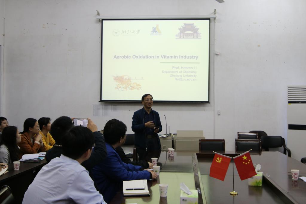 学术委员会秘书长、浙江省特级专家、中国化学会理事、中国化工学会理事、浙江省化学会理事长、中国化工学会离子液体专业委员会副主任委员、中国化学会化学热力学与热分析专业委员会副主任委员、中国化学会绿色化学专业委员会委员、中国化学会计算化学专业委员会委员、《化学学报》、《化工学报》编委、浙江大学博士生导师李浩然在志廉楼136会议室做了一场题为“维生素产业中的空气氧化反应”的学术报告。银河国际