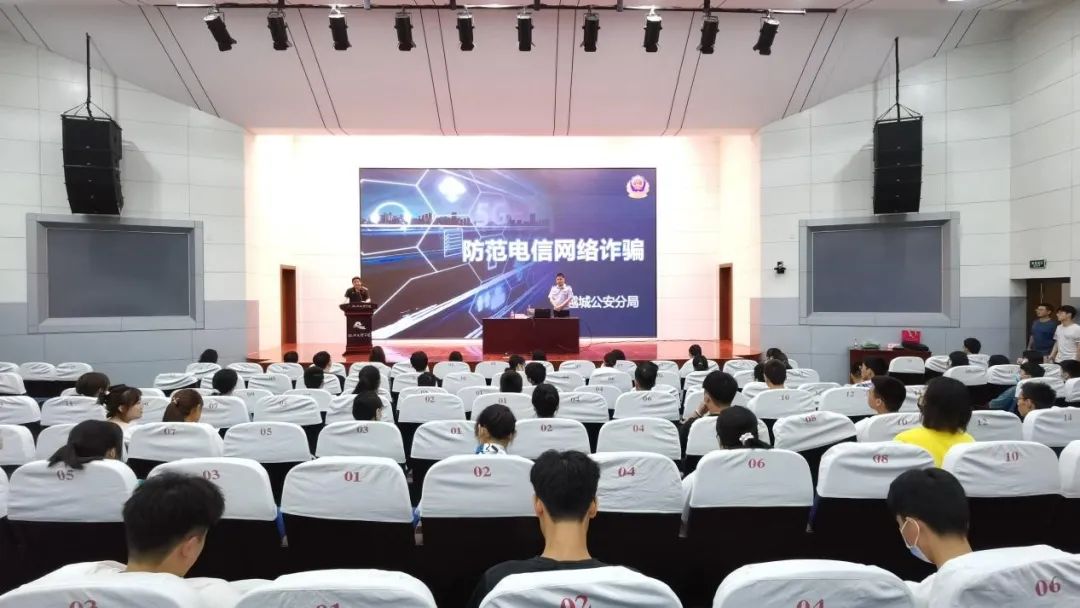 21级本研新生做《大学生安全知识及防诈骗教育》专题讲座。傅警官结合高校中多发常见的电信诈骗案例,详细介绍了针对学生诈骗案件的常见类型、手段以及防范办法。