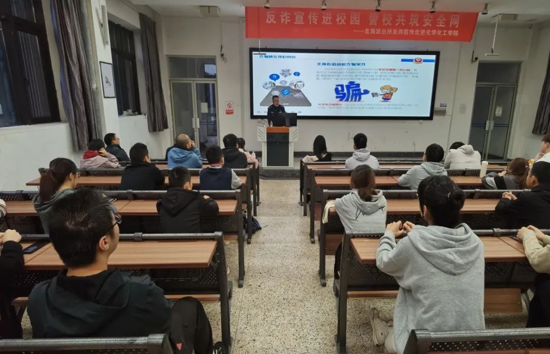 10月20日、11月5日、11月11日,在北海派出所唐朝晖副所长带领下,8位反诈民警走进校园,分批为银河国际