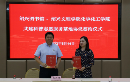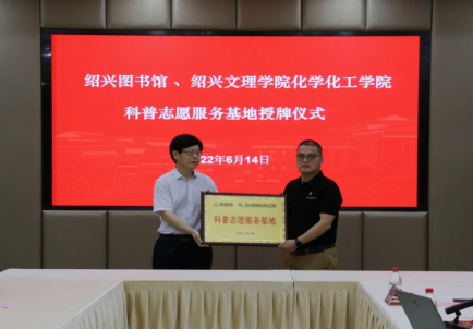 化学与新材料科普教育基地情况,介绍了与绍兴图书馆共建科普志愿服务基地工作计划。