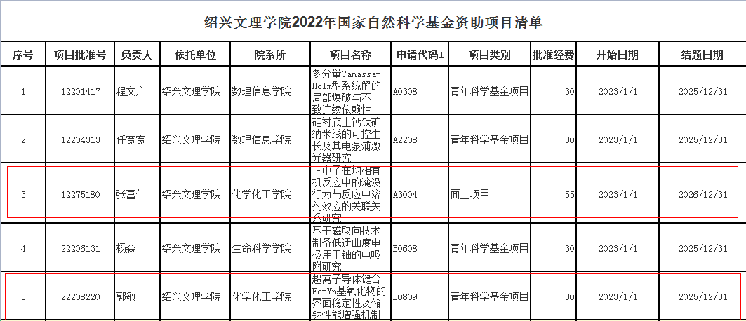 2022年度国家自然科学基金项目评审结果揭晓, 根据国家自然科学基金委发布的《关于公布2022年度国家自然科学基金申请项目评审结果的通告》(//www.nsfc.gov.cn/publish/portal0/tab434/info87195.htm), 银河国际 获批主持3项。其中沈润溥、张富仁两位老师申报的项目获批面上项目,郭敏老师申报的项目获批青年科学基金项目。