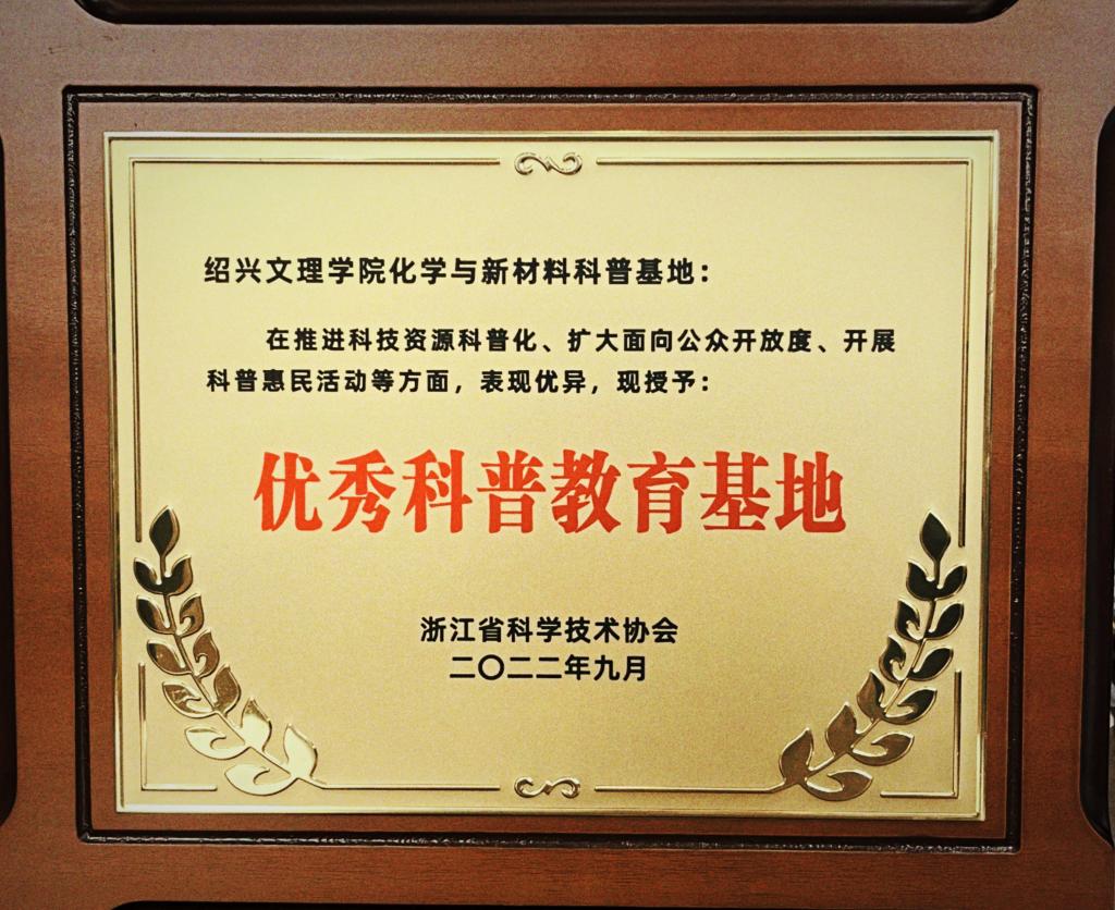 化学与新材料科普基地在推进科技资源科普化、扩大面向公众开放度、开展科普惠民活动等方面表现优异,被授予浙江省优秀科普教育基地。