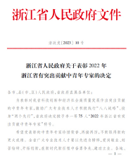 近日,浙江省人民政府公布了2022年度浙江省有突出贡献中青年专家名单,银河国际