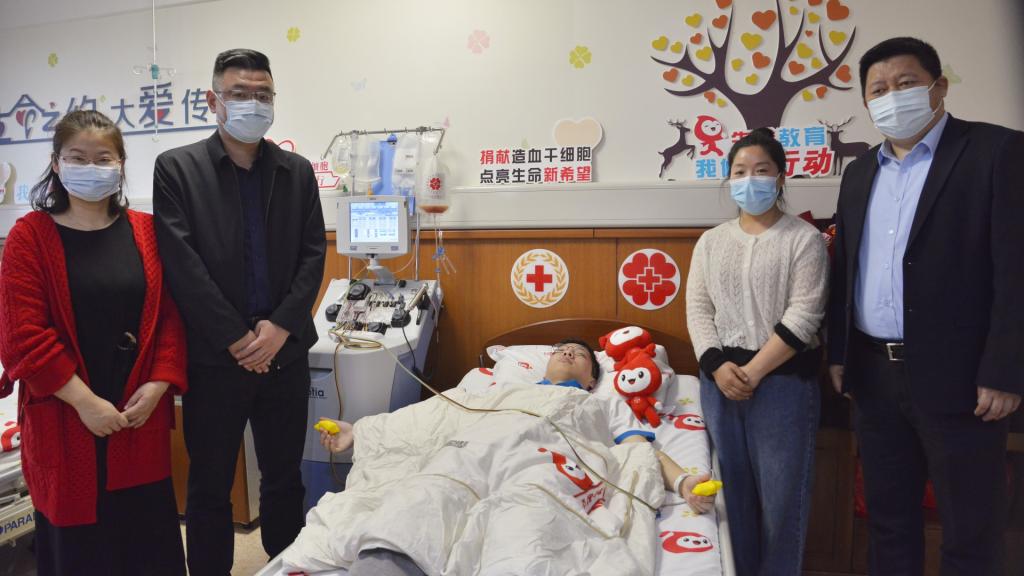 相关领导和老师都来到了浙江金华,陪潘同学一起完成造血干细胞的捐献。在老师、家人和志愿者们的陪伴下,潘同学走进采样室,完成了造血干细胞的采集,为一个家庭带去延续生命的希望。