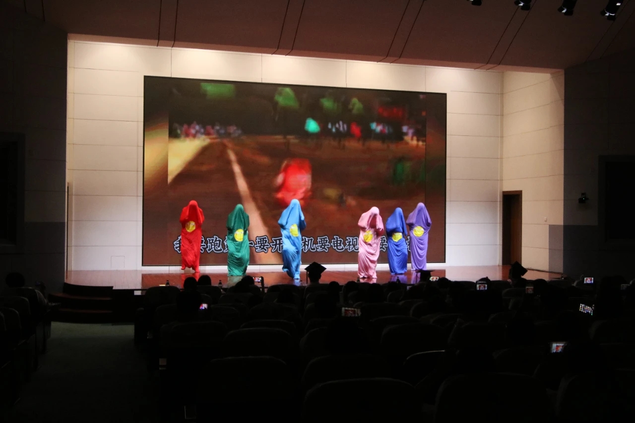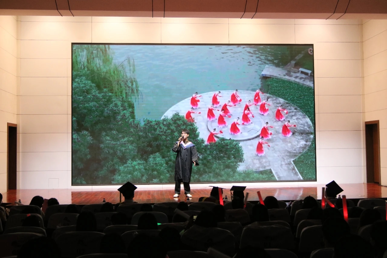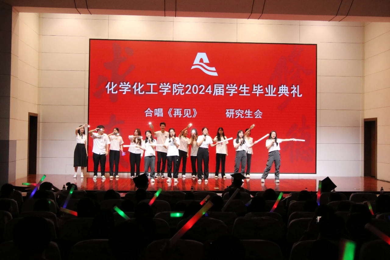 在典礼的最后,校园十佳歌手王佳敏给毕业生们带来了精彩的歌曲串烧;分团委学生会给毕业生们送上一首充满回忆的诗朗诵;毕业班高分子201班同学们为大家带来了一段幽默的《被子舞》,研究生会为毕业的同学们合唱歌曲《再见》,为这场毕业典礼画上了完美的句号。