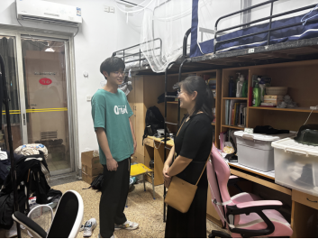 领导与留校学生亲切交谈,了解他们的生活状况,并提醒学生们注意高温天气和台风期间的安全防护措施,尽量减少外出,将阳台上的物品放置室内摆放,准备适量的防暑降温药品等。