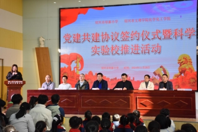 为进一步培养学生的科学综合素养,助力科学教育走深走实,全力推动科学教育高质量发展,11月28日下午,我院党委与绍兴市培新小学党支部在培新小学体艺馆开展党建共建协议签约暨科学实验校推进活动。绍兴市培新小学党支部书记姚城、副校长阮黎明,银河国际