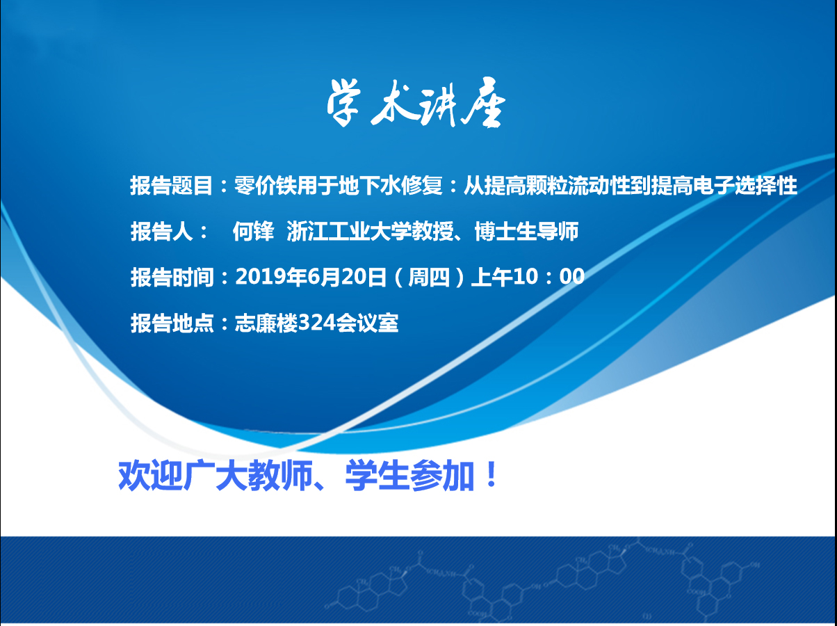 学术讲座:零价铁用于地下水修复:从提高颗粒流动性到提高电子选择性