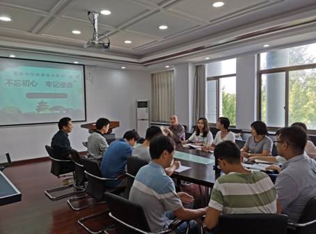 最后,全体教师���员开展了“一句话忆初心”活动,并在热烈的氛围中分享各自近期的学习心得��体会。许多党员都体会到,在新时代大学生的培养中,教师在传授知识的同时,也要加强爱国思想教育,深化学生对党和国家、对民族的认同和深厚感情。大家一致认为,我们现在处于最好的时代,无论从城市,还是到偏远的农村,全国人民的幸福感年年提升,我们应该始终牢记共产党员的初心和神圣使命,为祖国的建设、为中华民族的伟大复兴贡献自己的一份力量。