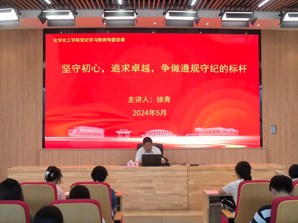 5月24日,学院党委书记徐青在风则江大讲堂107报告厅作题为“坚守初心,追求卓越,争做遵规守纪的标杆”专题党课,全体学生党员和学院党校发展对象培训班学��参加党课学习。