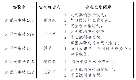 此次盘查旨在通过系统性地审查实验室的各项安全标准执行情况,包括但不限于设备安全性能、化学品存储与管理、电气安全、消防安全以及紧急应对措施的有效性,以期有效预防各类安全事故的发生,维护银河国际 实验环境的稳定与安全。现将本次检查中发现的问题通报如下: