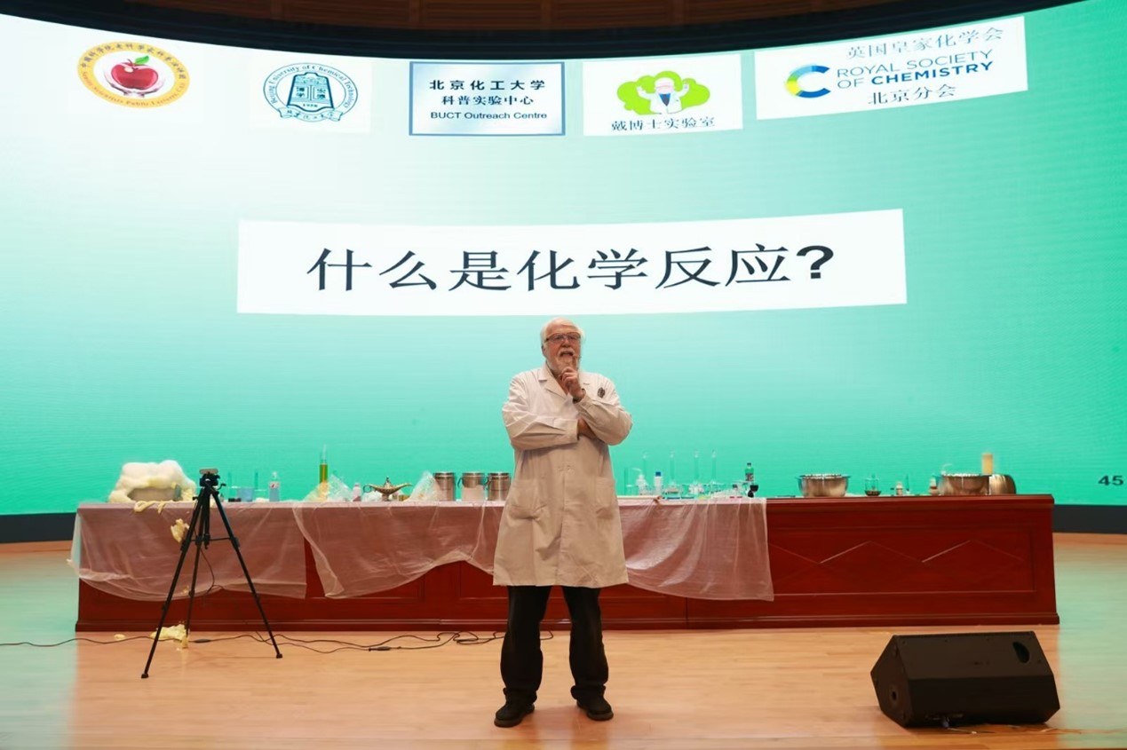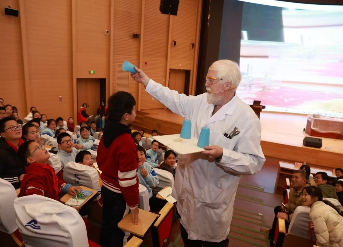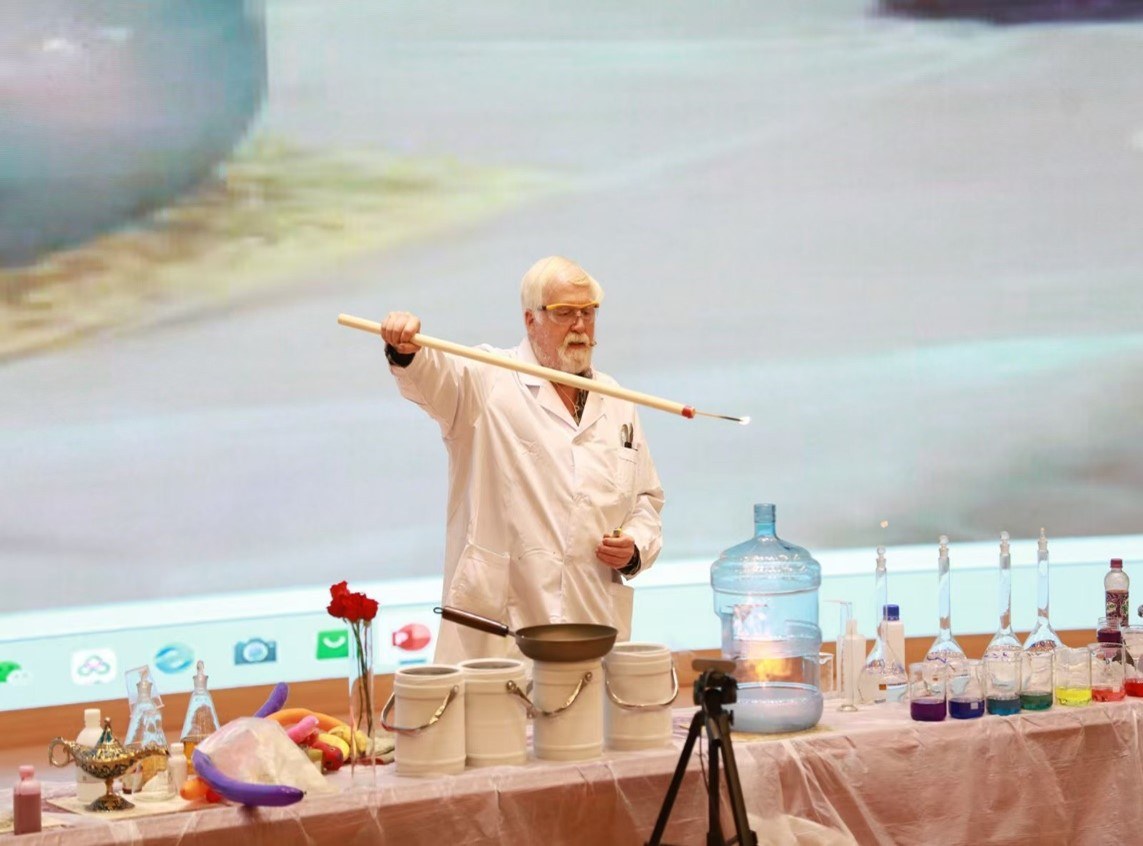 风则江大讲堂为越城区中小学生带来精彩的化学科普讲座。在这个充满神奇与奥秘的科学世界里,开启了一场精彩绝伦的化学之旅。戴伟教授来自北京化工大学,是英国籍化学专家、英国牛津大学博士、牛津大学博士,长期致力于化学科普工作,以其生动有趣、妙趣横生的实验和讲解,让无数人领略到了化学的魅力。